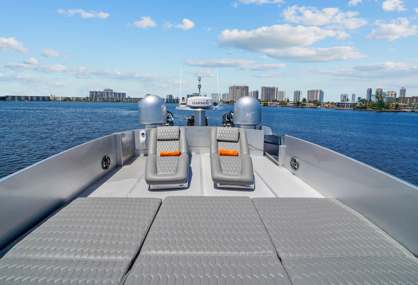 Pershing built the yacht to be as aerodynamic as possible and with the addition of high-powered engines and surface propellers, the yacht promises top speeds. A veritable thoroughbred on the water, this mostly aluminum yacht is exceptionally sporty. Her design is the collaboration of Pershing, Ferretti Group Engineering and Fulvio De Simoni.